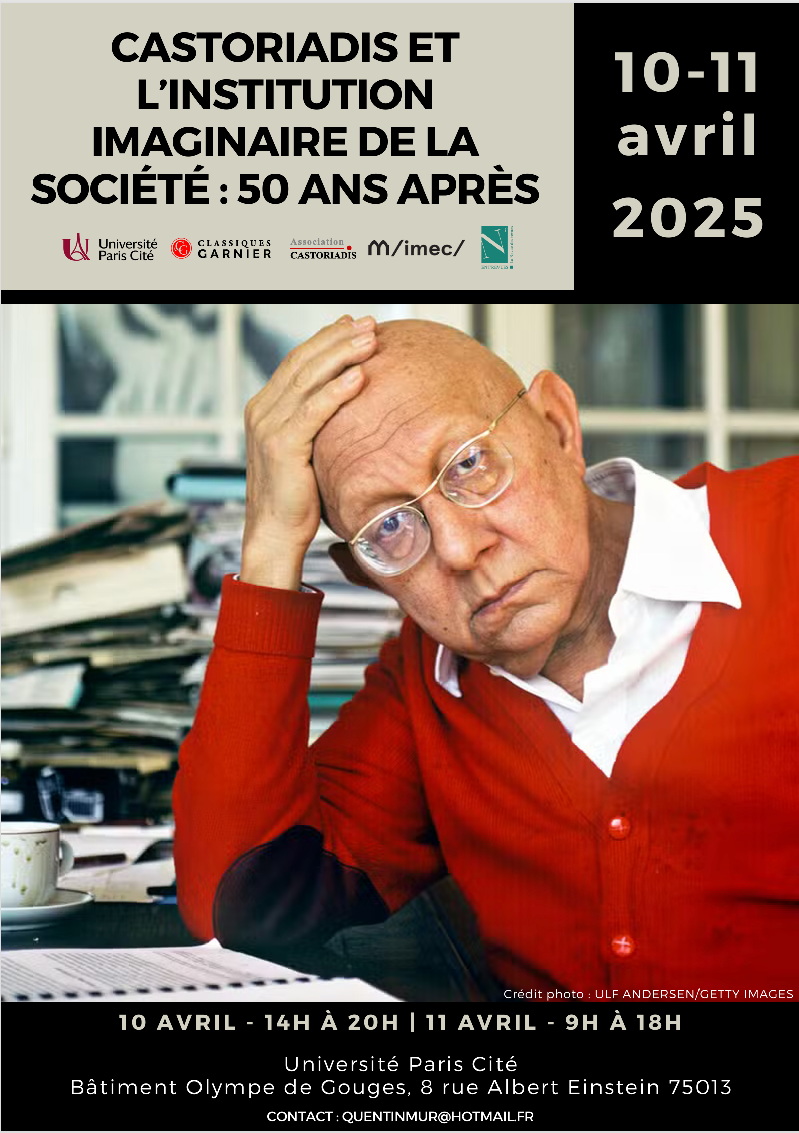 Castoriadis et L'Institution imaginaire de la société: 50 ans après. Journées 10-11 avril 2025. Programme en PDF.